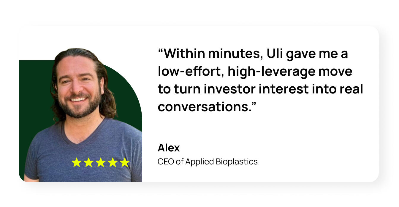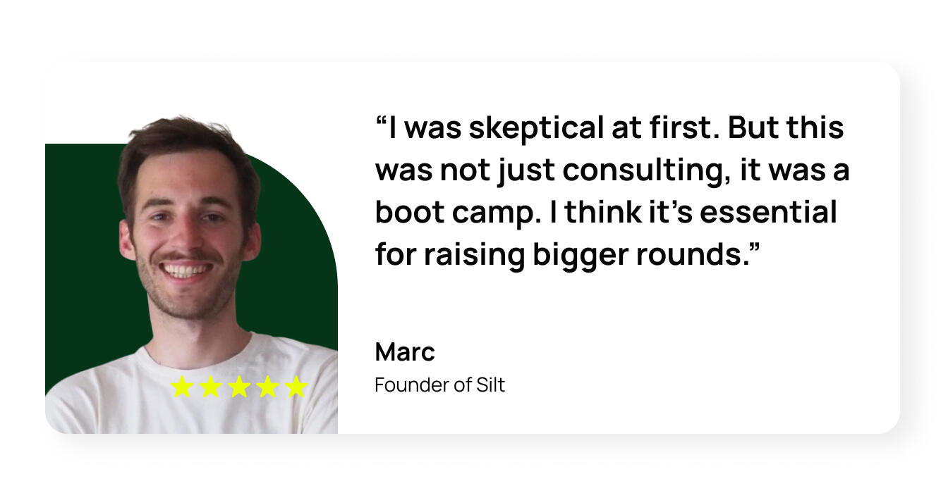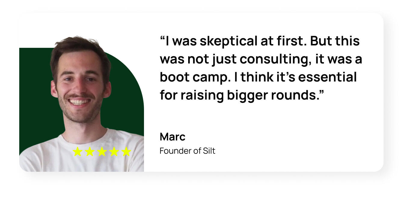 I get it. I’ve been there. Most consultants promise you the world, then give you a playbook and disappear.Not me. I sit with you in the mud. This is 1:1, deep work.I’ve helped 100+ founders raise — not because I have all the answers, but because I’ve made all the mistakes.Happy to send interviews with my clients. Just drop me a line at [email protected]. But in the end, listen to your gut.