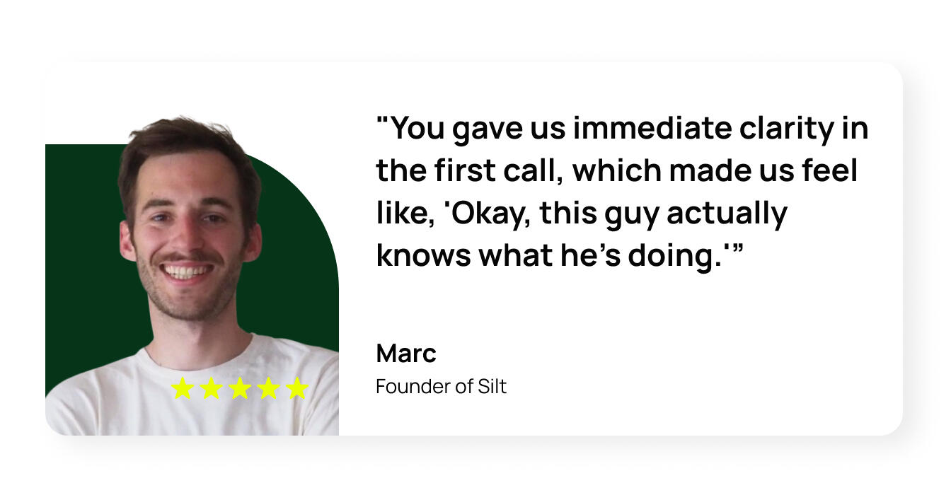 You’ve got me riding shotgun while you test and launch.In weekly calls, we revise, adapt, and handle the messy middle. Everything founders usually have to figure out alone.
