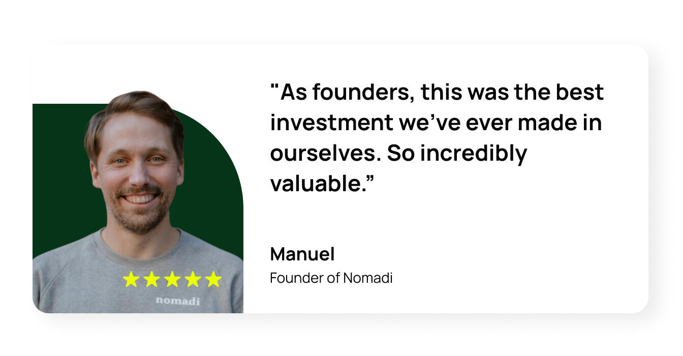 I take on max 2 new clients per month and I choose them carefully. I invest a ton of time in each one.That’s how I like to work. I enjoy getting really invested in my clients’ vision.And I didn’t set my business up in a way to funnel hundreds of founders through some generic course.This is personal for me because I’ve been where you are now.