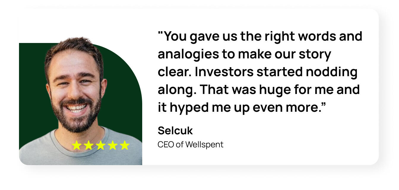 We’ll write and design a Tier-1 pitch deck with only 3 hours of raw input from you