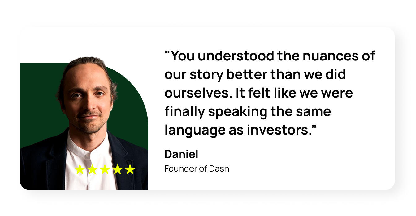 I’ve raised money myself. I’ve been the VC across the table. And I’ve worked with over 100 founders, across continents, creating pitch decks that unlocked +$110 million of capital.I’ve seen more than 5,000 pitches over the last 11 years. And I’ve developed a keen expertise for what makes investors pass and what makes them book a meeting and sign a check.This work matters to me because I’ve seen brilliant founders get dismissed — not for what they built, but for how they presented it.