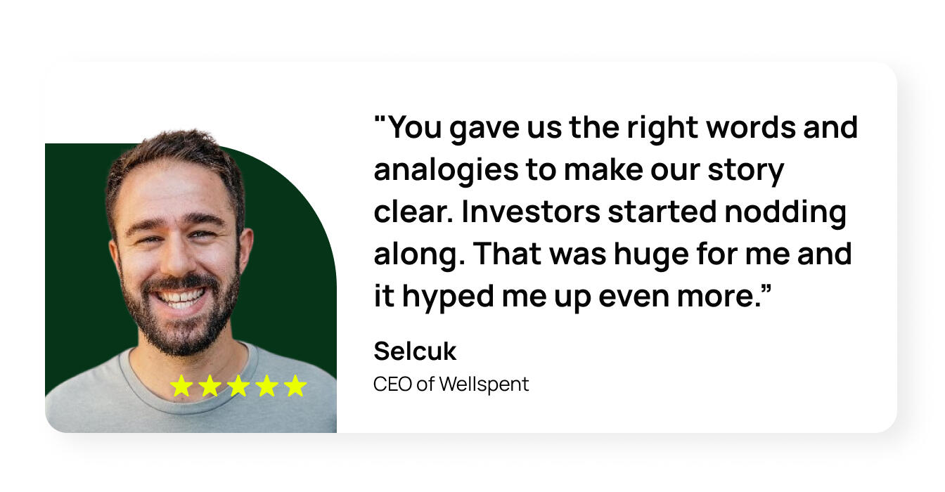 We’ll write and design a Tier-1 pitch deck with only 3 hours of raw input from you